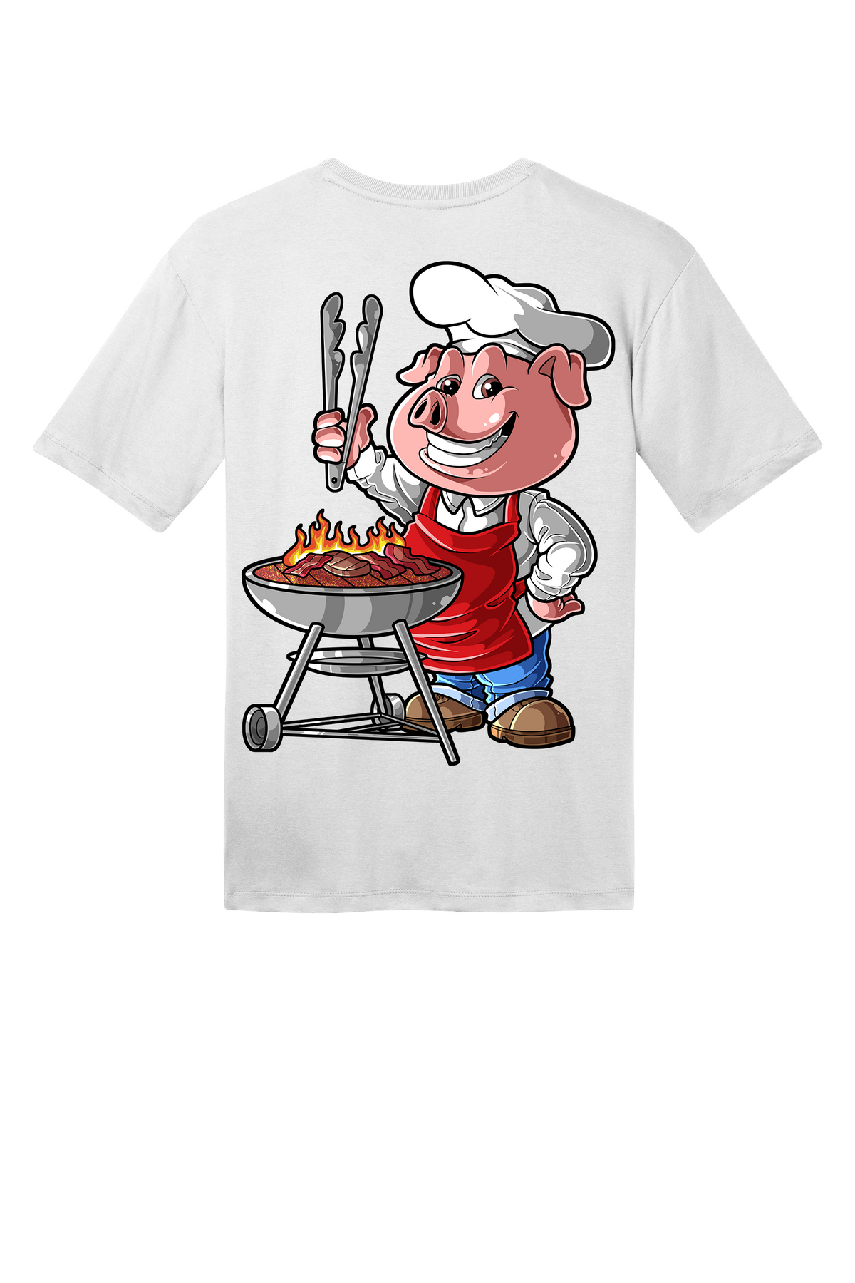 This comfortable and casual t-shirt perfect for your next outing featuring our grilling piggy design. Made of 100% cotton, this shirt is designed for a relaxed fit with a comfortable neck and shoulder taping. Whether you're just lounging around the house or out on the town, this tee is a great option for any day.