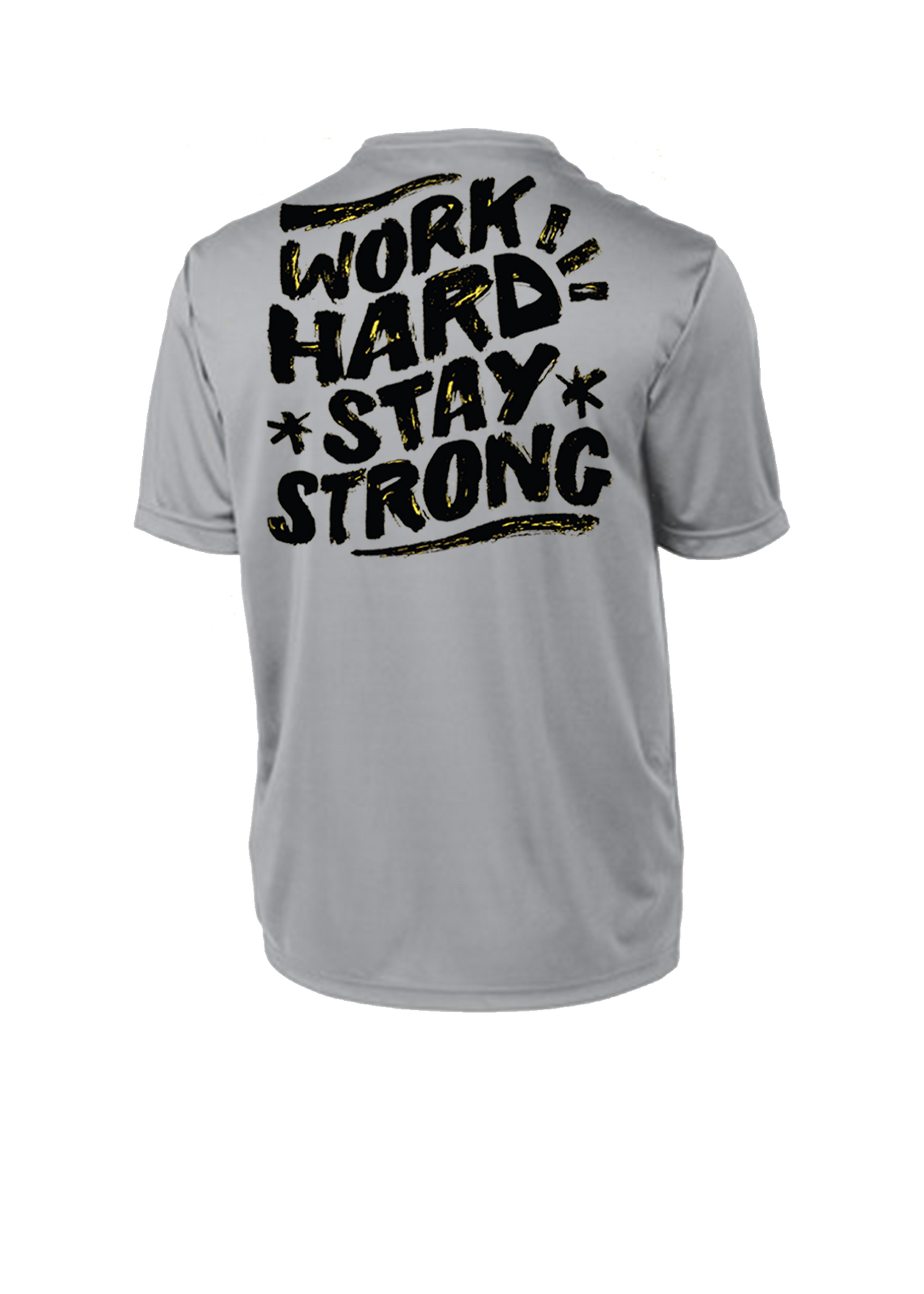 The PC "Work Hard Stay Strong" T-Shirt is perfect for everyday wear. It's made of lightweight, roomy and highly breathable fabric that wicks moisture away from the body to keep you cool and comfortable. The shirt features the original PC logo on the front and a work hard stay strong quote on the back. It's designed to fit and feel great on both men and women.